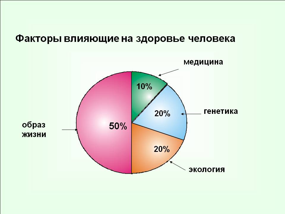 Как видим из схемы приведенной выше, образ жизни имеет наибольшее влияние на здоровье человека .Он же является наиболее контролируемый и управляемый самим человеком.